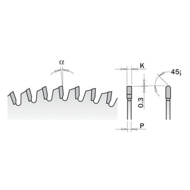 Форма зубців TP ― прямий/трапеція. Негативний передній кут заточування — 6°.